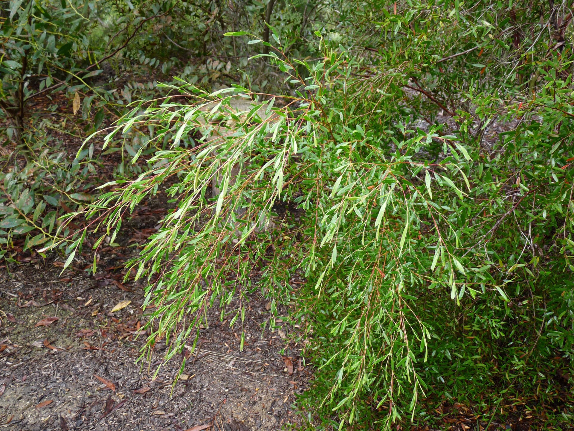 The beautiful trunks and branches of this species are its main feature. Recently, the flowering period has been lengthy so maybe include this species for many reasons. When not in flower, the weeping form is most attractive. Being a rare species, it is positive to include this species in as many protected garden spaces as possible. Rare species Conservation Status: 2RC-, attractive light brown peeling bark exposing new bright green stems.