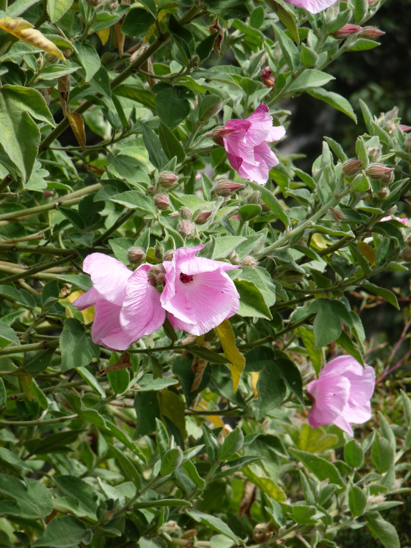 Hibiscus…from Greek, hibiskos, the marsh mallow, a malvaceous plant that grows in marshy conditions. splendens…’shining’ or ‘glistening’; more generally ‘splendid’, referring to the overall appearance of the plant.