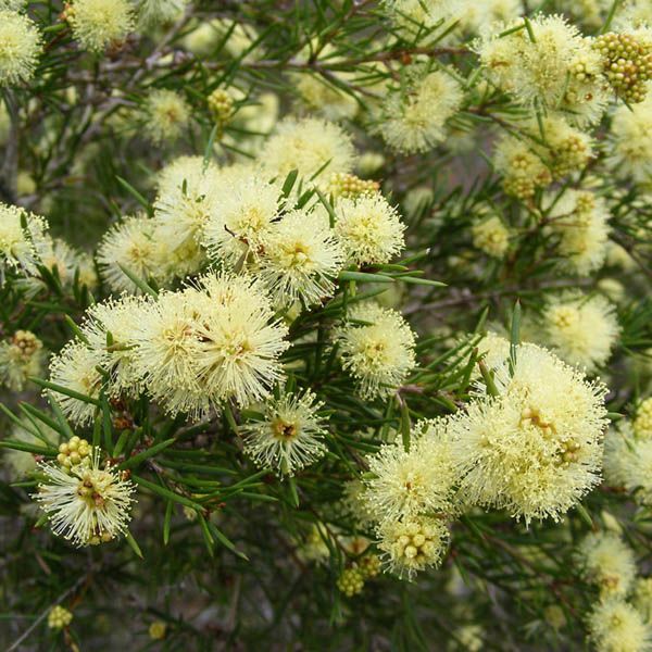 Melaleuca…from Greek melas; black and leukos; white, referring to black marks on the white trunks of some species due to fire, nodosa…from Latin nodosus; knobby, a reference to the fruiting capsules along the stems..